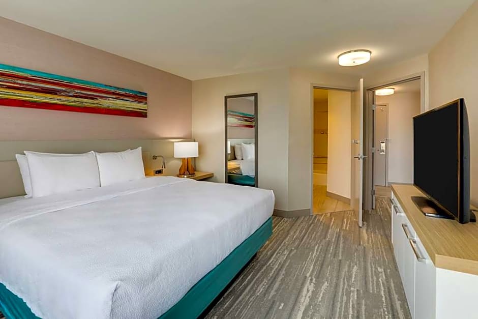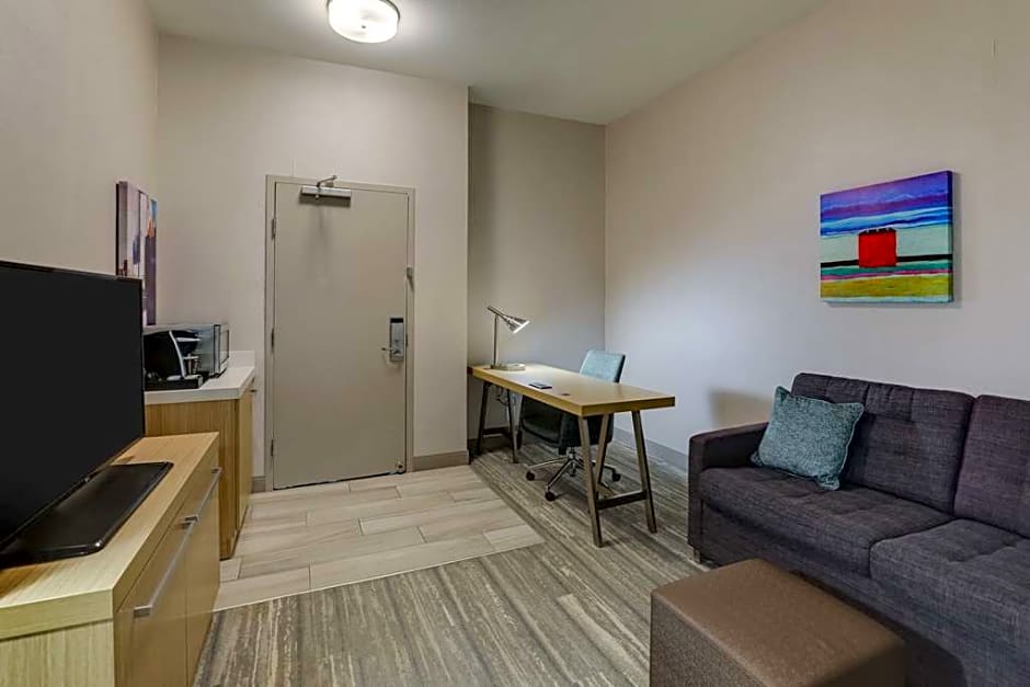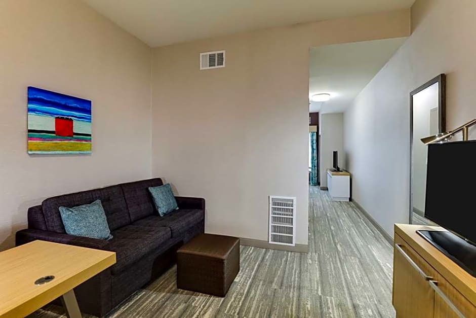 Our king Jr. hearing accessible suite features one king-sized bed with pillow-top mattress and a separate living area, a sofa bed, and a 36-inch HDTV. Be productive in the ergonomic chair, which is good for the back and better for work. Recharge when you want to using the microwave, refrigerator, and coffee/tea maker. Find what you need to get the job done with the special work area's complimentary WiFi, desk with lamp and electrical outlets at desk height, and telephone with dataport and voicemail. Any corresponding photo may not reflect the specific accessible room type or room feature.