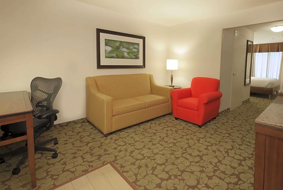 Complimentary WiFi, separate living room, sofa bed, desk, microwave, mini-refrigerator, HDTV. Settle into this spacious two-room suite, featuring a sofa bed in the living room, as well as the king-sized Garden Sleep System bed in the bedroom. Finish off some work at the desk, with the help of our complimentary WiFi access, in comfort in the ergonomic chair. Stretch out on the sofa in the separate living room, and watch on-demand movies and cable channels on the 36-inch flat-screen HDTV. Prepare some food in the small kitchen area, with a mini-refrigerator and microwave. This suite also includes a Keurig® brewing system coffee machine, an adjustable desk lamp, signature bath products, and an alarm clock radio.