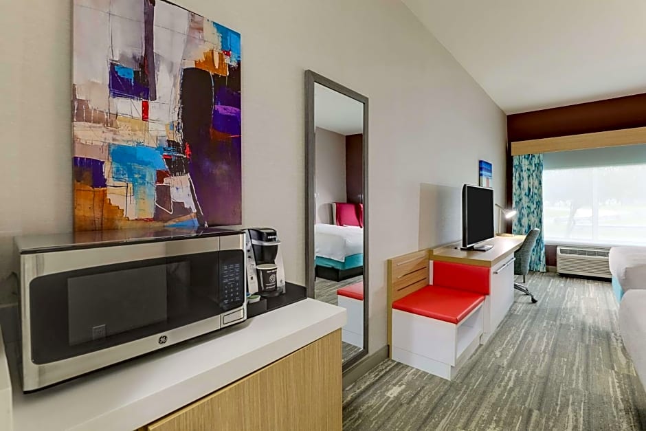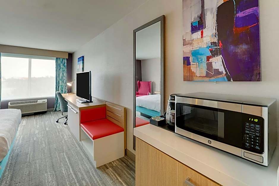 Our king Jr. hearing accessible suite features one king-sized bed with pillow-top mattress and a separate living area, a sofa bed, and a 36-inch HDTV. Be productive in the ergonomic chair, which is good for the back and better for work. Recharge when you want to using the microwave, refrigerator, and coffee/tea maker. Find what you need to get the job done with the special work area's complimentary WiFi, desk with lamp and electrical outlets at desk height, and telephone with dataport and voicemail. Any corresponding photo may not reflect the specific accessible room type or room feature.